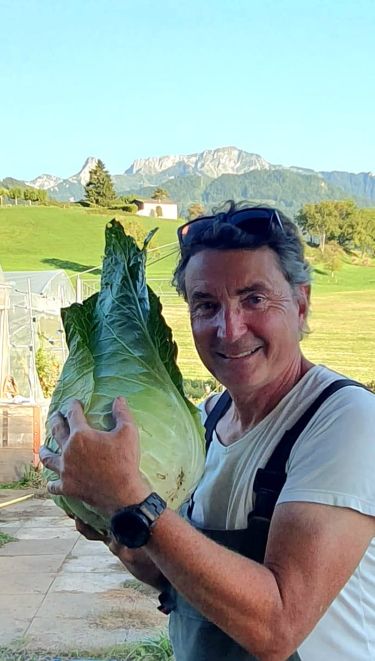 Enseignante à Vevey, Sabine a habité dans de multiples pays. Gourmande et gourmet, adorant les bons légumes et sensible à une production en harmonie avec le vivant, Sabine contacte systématiquement une association de producteurs locale dès son arrivée dans un lieu de vie et s'investit avec générosité dans son développement.